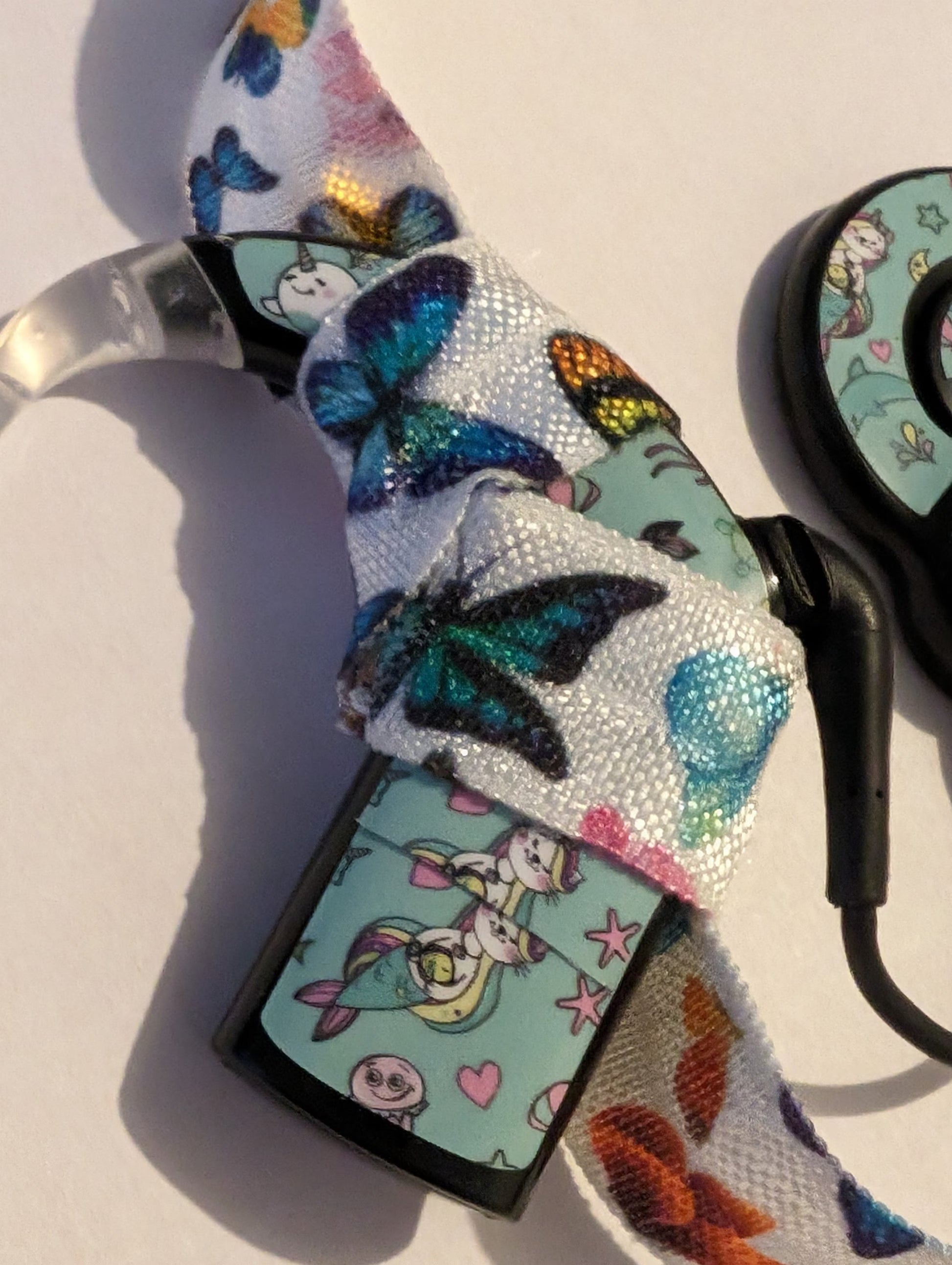 Bandeau ajustable pour implant cochleaire et aide auditive motif papillon