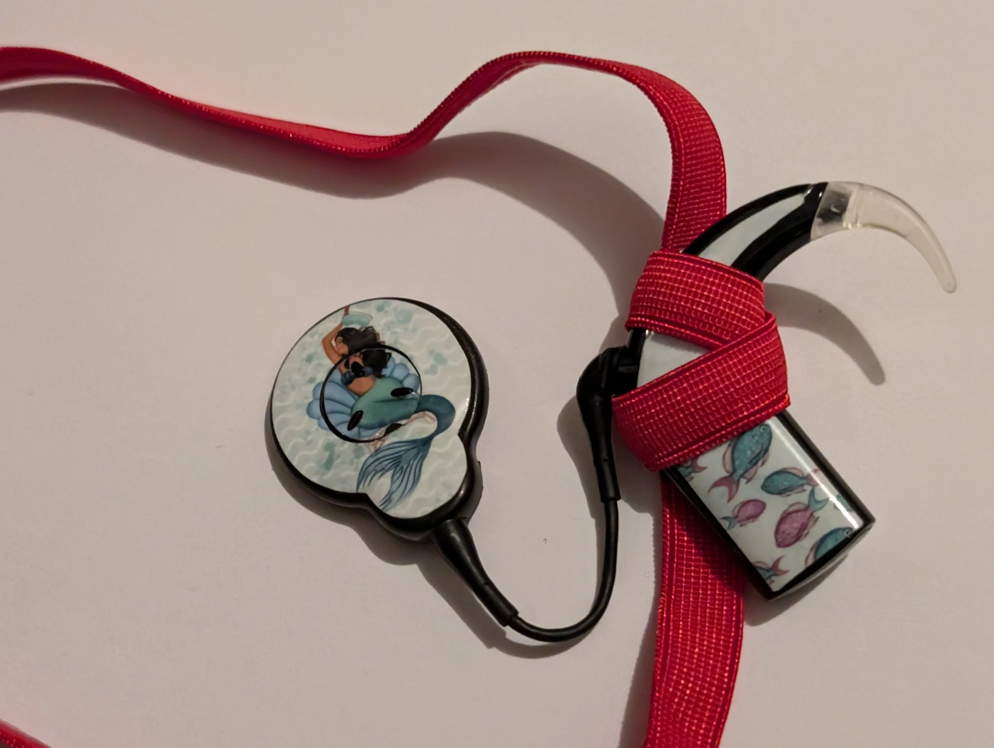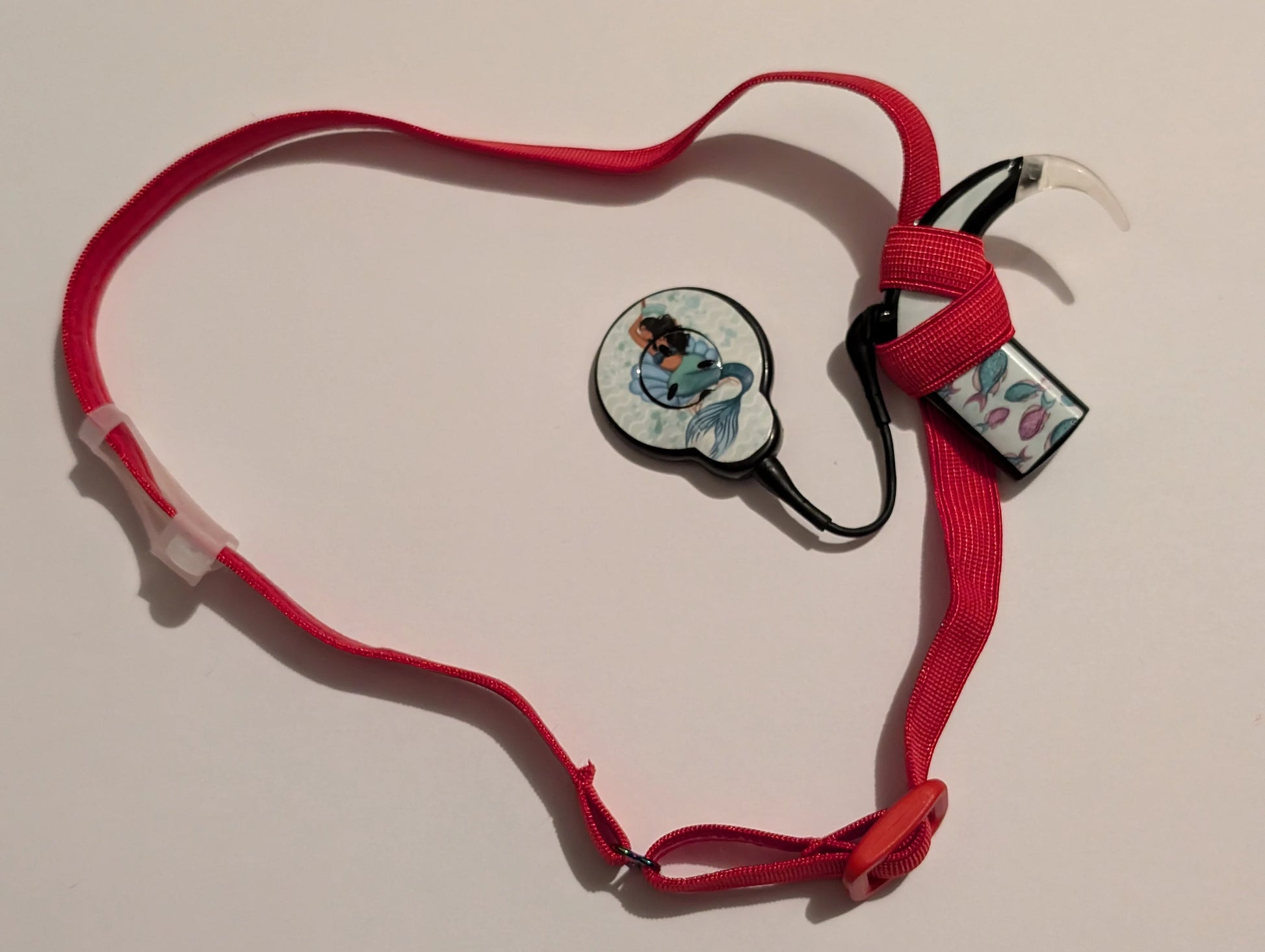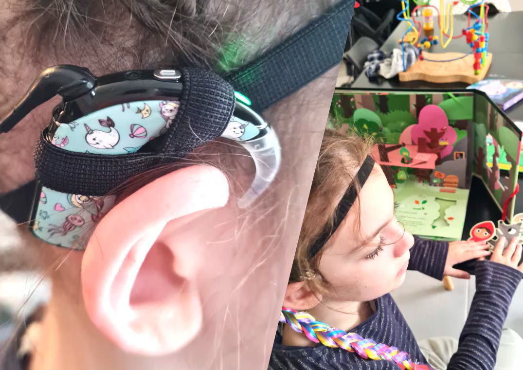 Bandeau antidérapant mixte pour le maintien des implants cochléaire et prothèses auditives.