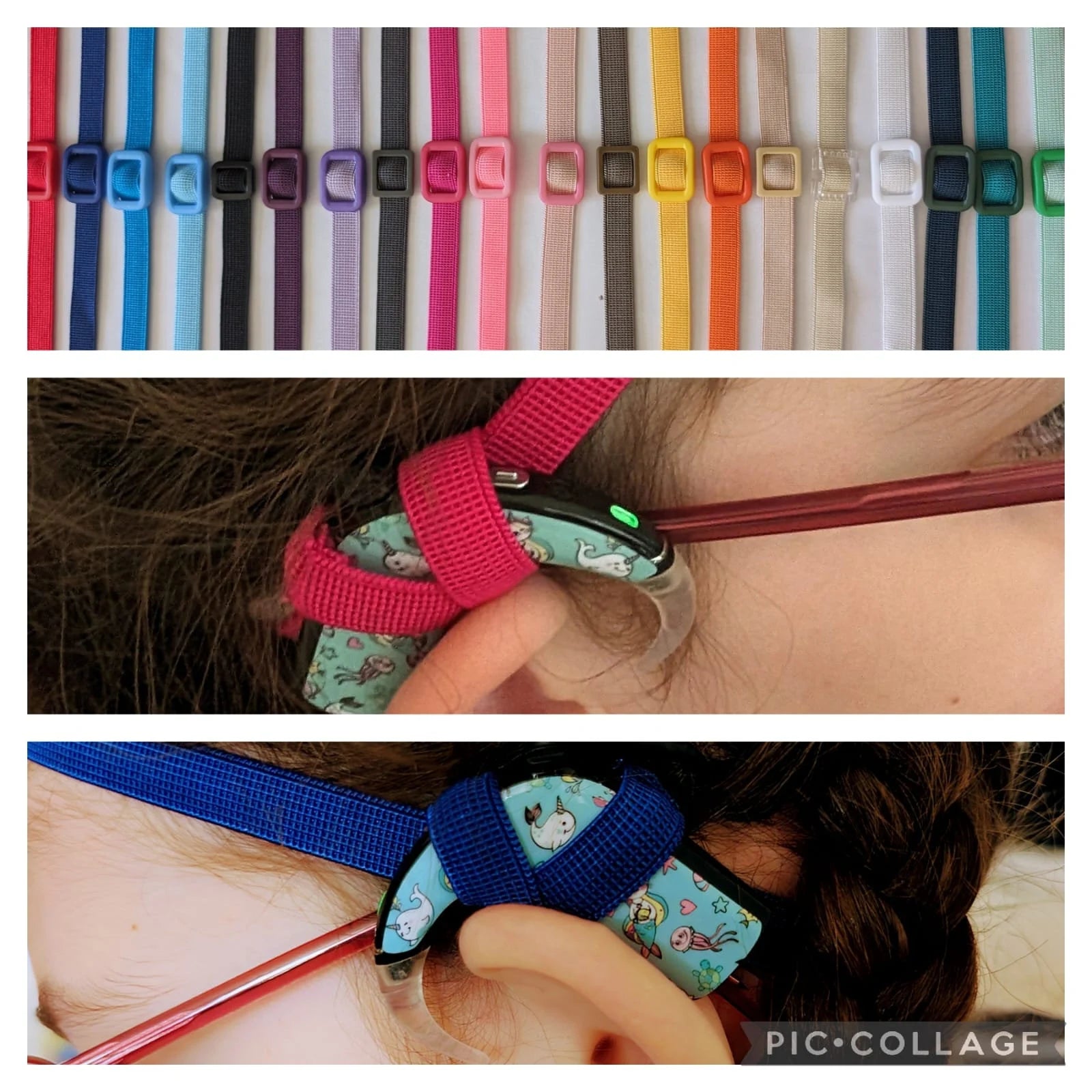 Chaque bandeau est fourni avec des attaches croisées universelles pour convenir a tous les types d appareils, il est aussi disponible avec des attaches prothèses en silicone.