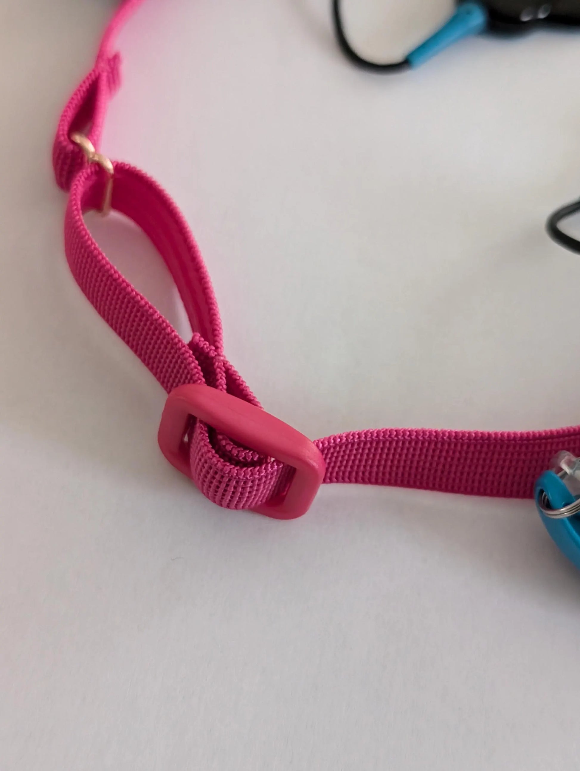 La taille est ajustable grâce à un curseur de réglage en plastique solide