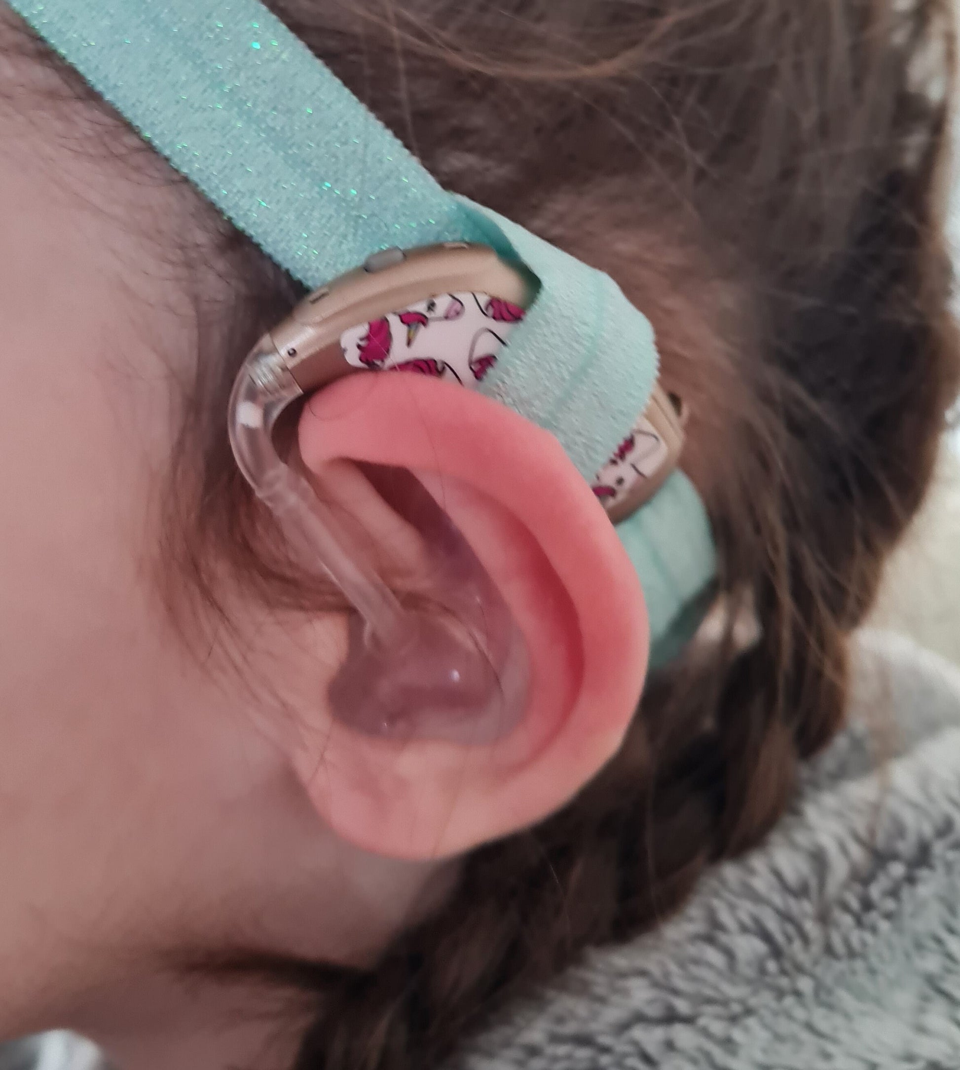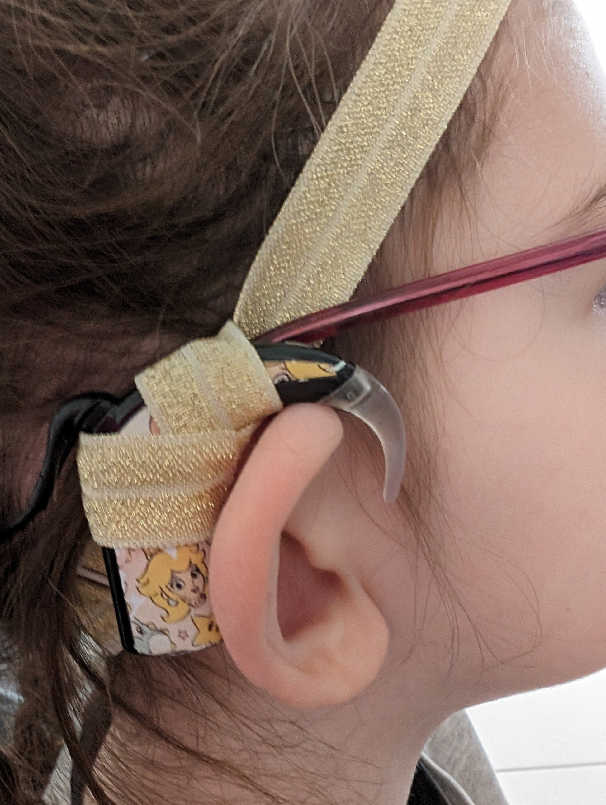 Bandeau d emaintien ajustable pour implants cochléaires et aides auditives à paillettes