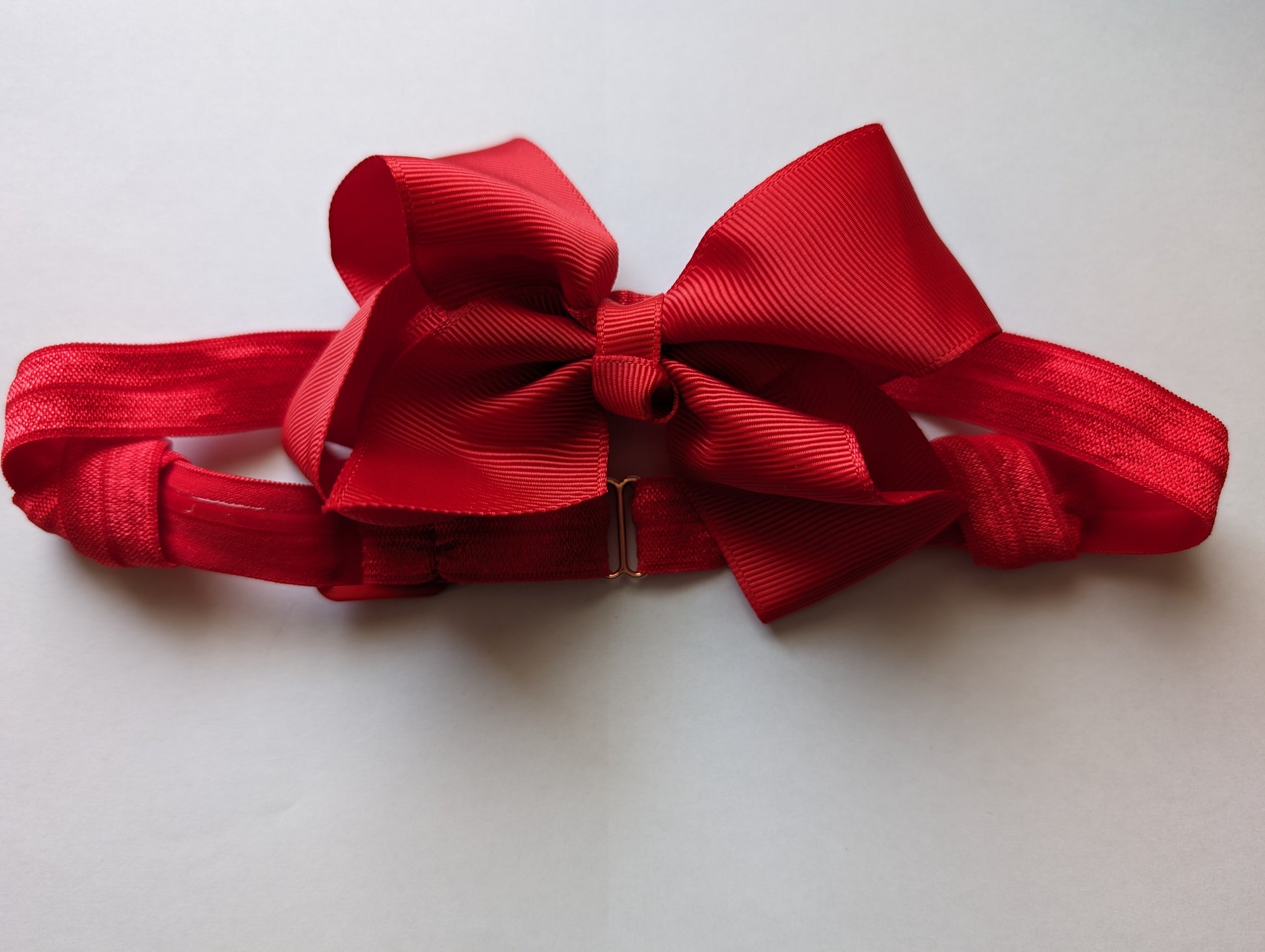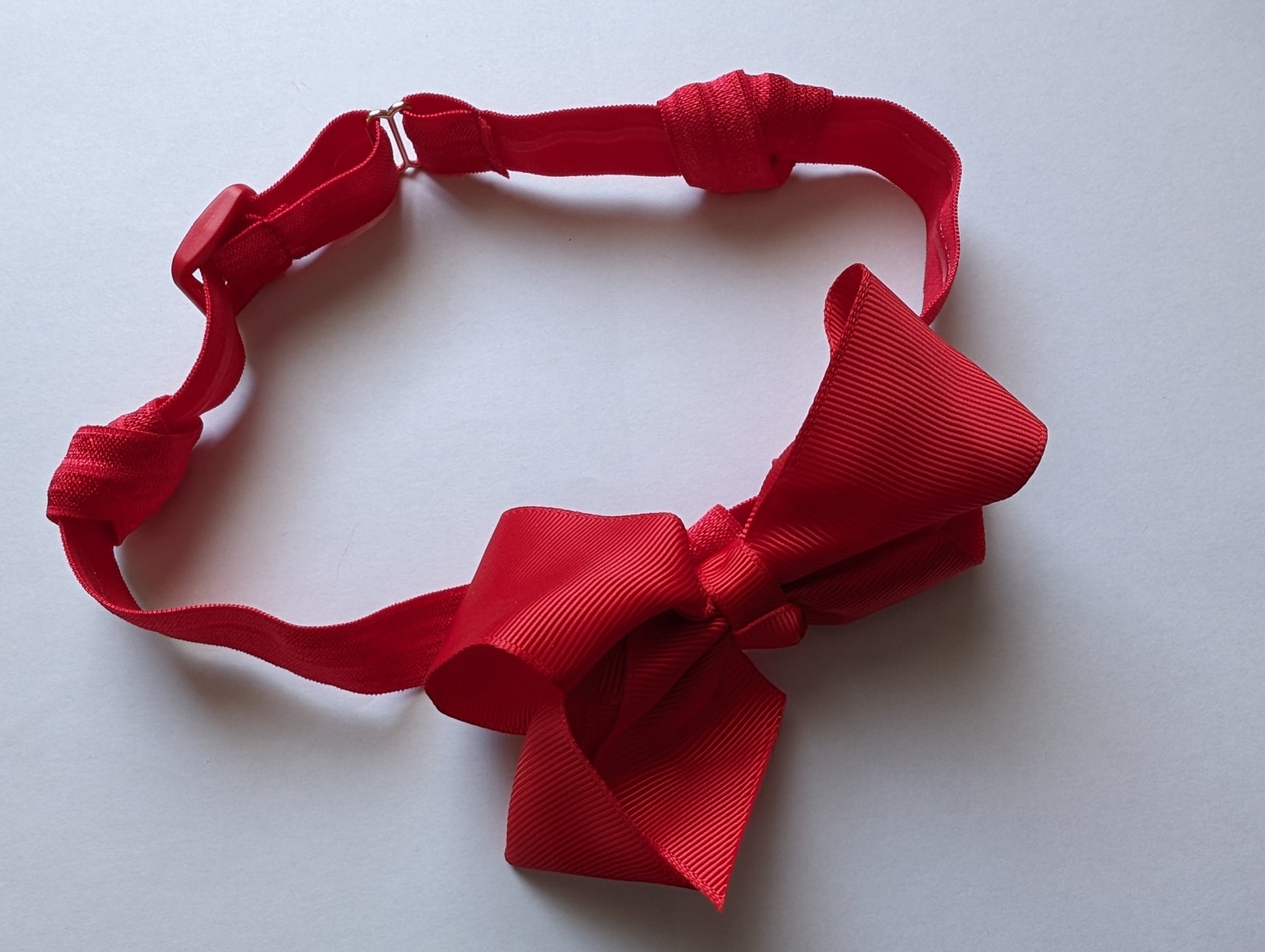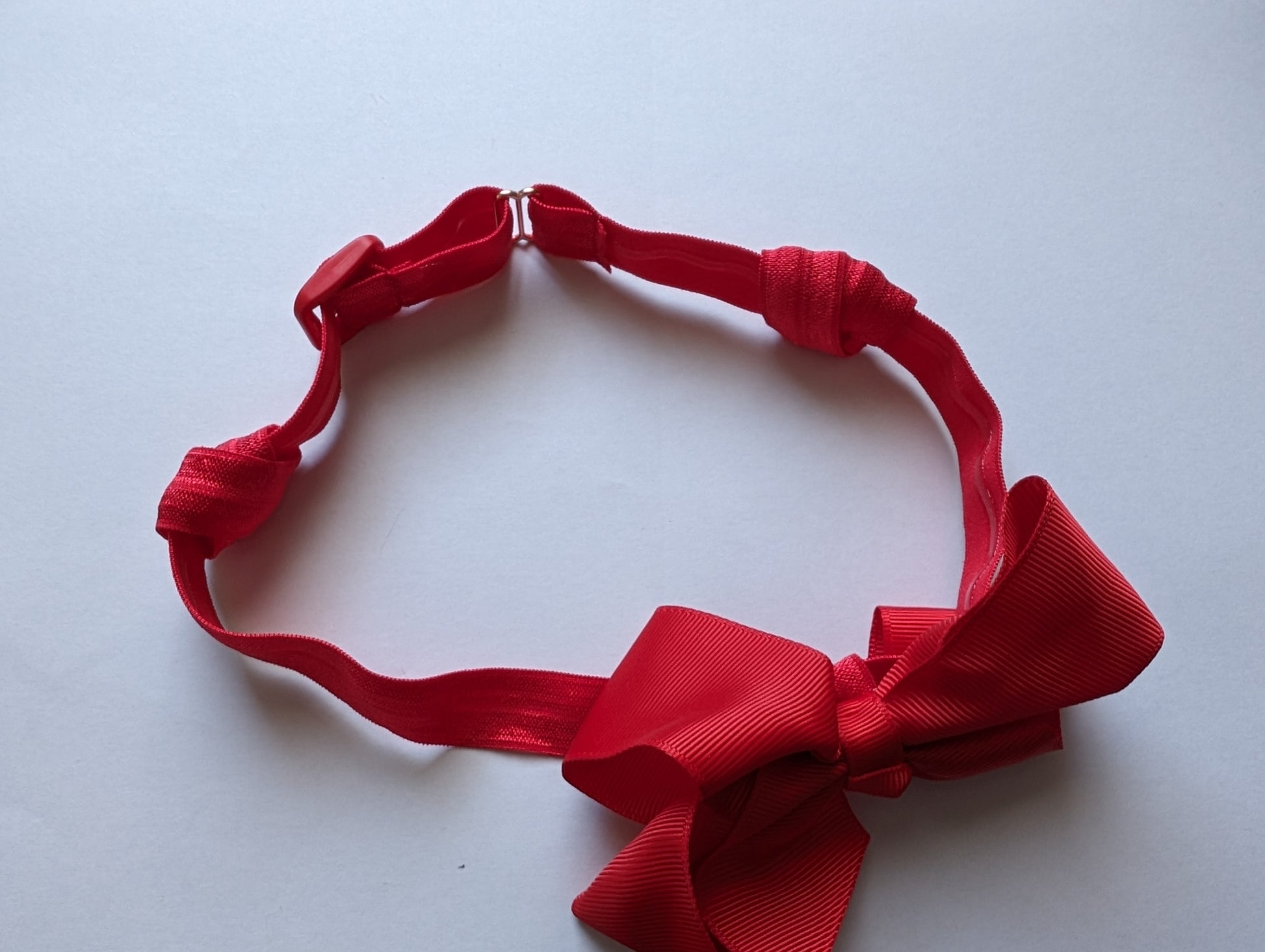 Bandeau de maintien pour implant et prothèses auditives avec nœud ou fleur coulissant.